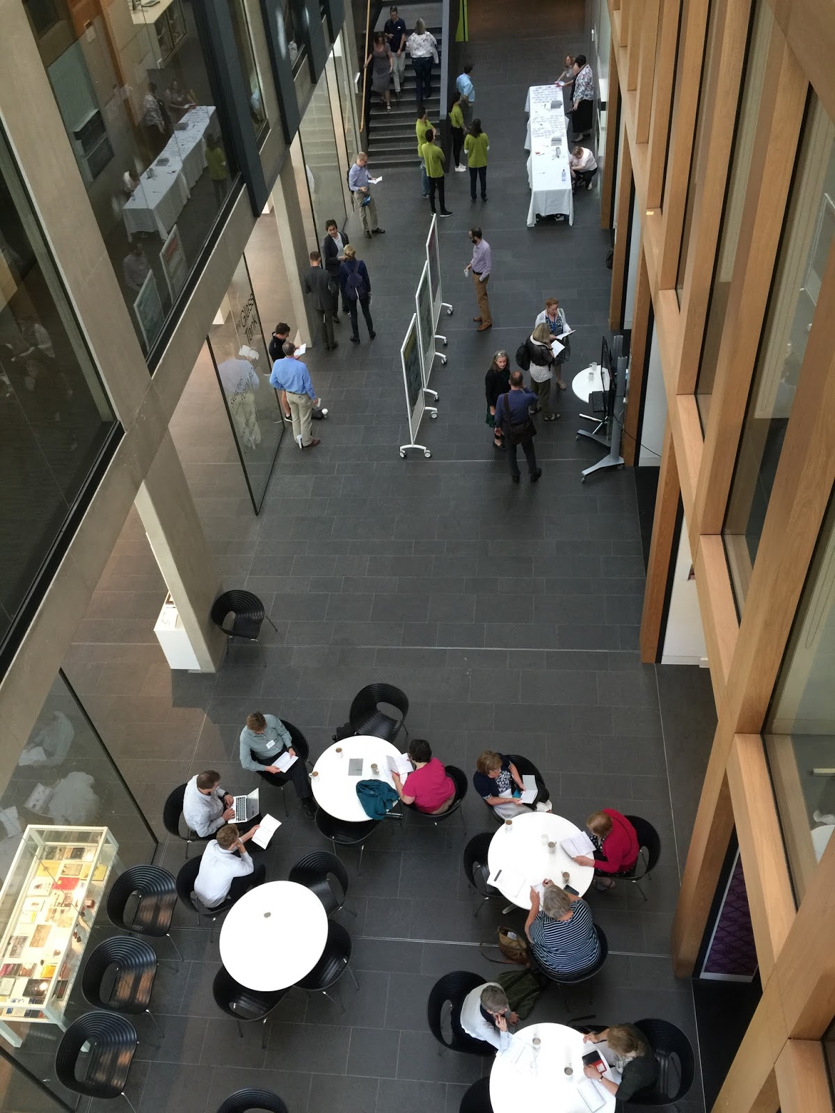 The 2nd floor provided a large seated space for the keynote: ‘Mind the gap‘ with Kirsti Lonka from the University of Helsinki. The ‘gap’ refers to the wide empty space between digital natives and our educational practices. Kirsti compared current students’ experience to being on a ‘long-haul flight’ (= switch all personal digital devices off) and her talk focussed on ideas how to create new cultures for study and academic work,